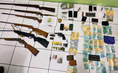 Vasta quantidade de dinheiro e armas foram apreendidos - Foto: Cidades na Ner