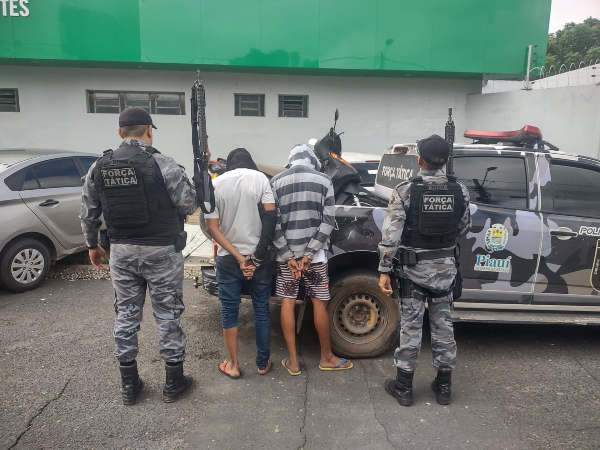 A Polícia Militar, através da Força Tática do 5º Batalhão, realizou na manhã deste sábado (25), a prisão de dois indivíduos, de iniciais F.W.C.S, de 21 anos e W.S.R.L, de 22, suspeitos de assalto no bairro Morros, na zona Leste de Teresina.