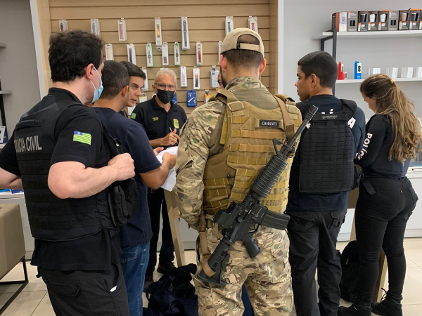 A operação também visava suspender as atividades econômicas nesses locais. Equipes da SSP-PI cumpriram os mandados na Praça da Bandeira e no Shopping da Cidade, ambos no Centro da capital, e uma loja em uma galeria na Avenida Raul Lopes. No momento das fiscalizações, um dos suspeitos estava portando munições de 9 mm.