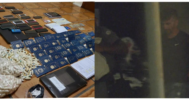 Durante a busca na residência, foram encontrados 38 passaportes, cerca de mil porções de pasta base de cocaína prontas para serem ingeridas, totalizando aproximadamente quatro quilos da droga, além de registros relacionados ao tráfico e cartões bancários. Algumas pessoas na casa afirmaram à polícia que ingeriam cerca de 150 pacotes para realizar viagens ao exterior, especialmente para países como França, Espanha, Holanda e Irlanda.