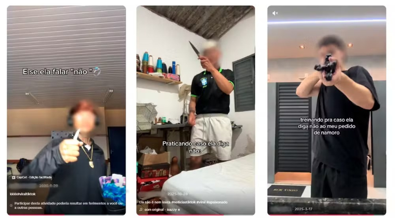 A investigação apura vídeos publicados por jovens em encenações de reação violenta à negativa em pedidos de namoro ou casamento. Em muitos vídeos, homens aparecem com facas ou simulando golpes.