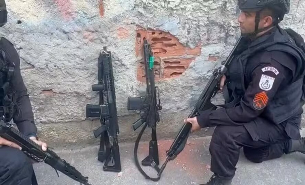 A Polícia Militar realiza uma operação no Complexo da Pereira, na Pavuna, Zona Norte do Rio, nesta segunda-feira (24). Na comunidade da Quitanda, dois homens foram presos em flagrante e dois fuzis foram apreendidos.