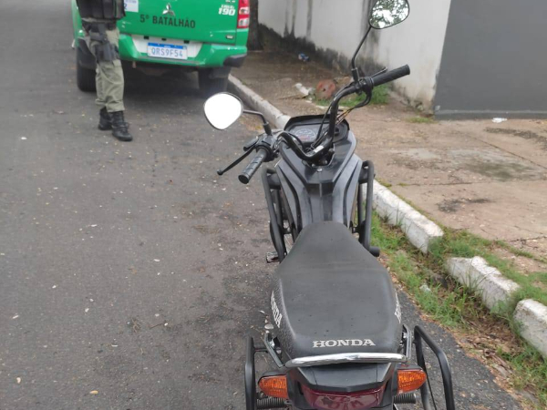 A Polícia Militar do Piauí, através do 5° Batalhão, recuperou na tarde desta terça-feira (21), uma motocicleta que havia sido tomada de assalto no bairro Planalto Uruguai, na zona Leste de Teresina. O veículo foi localizado na Rua Barra do Longá, no bairro Santa Lia.