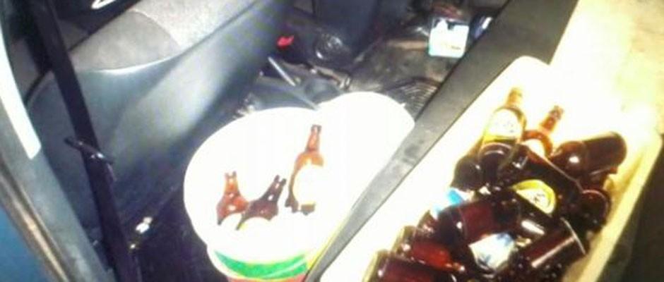 Bebidas encontradas dentro de um carro | Foto: PRF