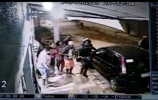 Nas imagens, é possível ver a vítima encostada na frente do comércio que trabalhava junto com cerca de nove pessoas, entre elas crianças, quando eles se assustam com o disparo e o funcionário é atingido, vindo a óbito no local. O criminoso passa correndo e dois policiais correm atrás.