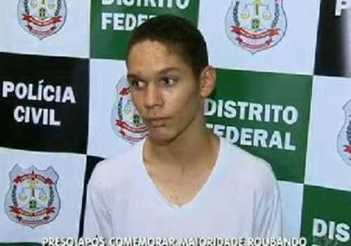 O jovem Diego Batista Vieira, de 18 anos, preso nesta terça-feira (18) acusado de roubo a veículos e estupro, disse à polícia que estava cometendo os crimes para "comemorar o aniversário". Ele estava com um amigo, identificado como Robson Neres de Almeida, de 27 anos, que está foragido.