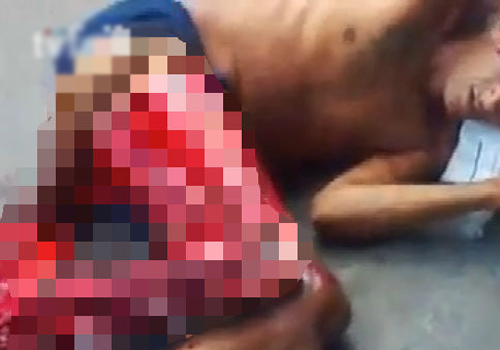Em vão. Um outro colega, também de chinelos, enfia os pés na poça de sangue, se aproxima e, com a ponta dos dedos, ergue a cabeça, puxada pelos cabelos.