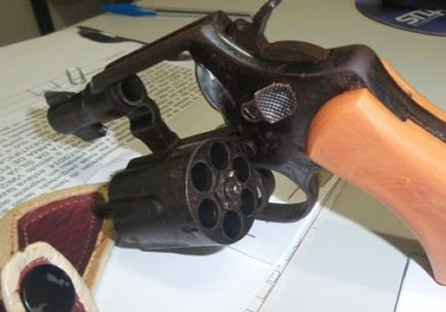Os policiais abordaram o veículo e ao solicitar os documentos do mesmo presenciaram uma atitude suspeita no motorista, momento que revistaram o interior do automóvel e encontraram um revólver calibre 38, série especial, com o tambor contendo 6 munições intactas.