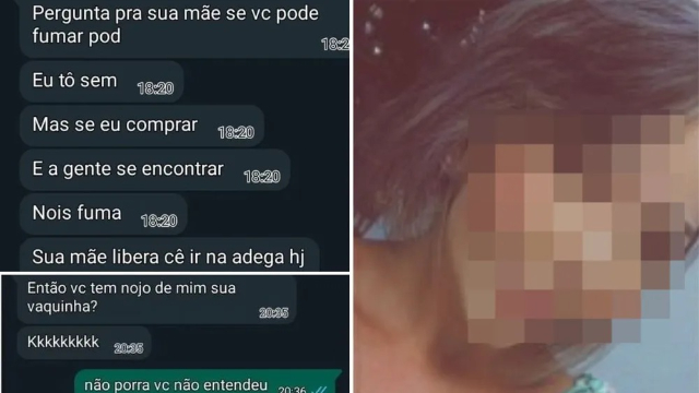 “Todas as mensagens foram muito pesadas”, afirmou a mãe, dizendo que sequer sabia o significado de 'pod' [marca de cigarro eletrônico] mencionado pela professora na mensagem. “Quando eu fui puxando na conversa, vi que ela chamou a minha filha para ir para uma adega, que não precisava se preocupar porque ela bancava o pod", disse.
