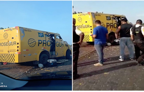 De acordo com a PM, os cinco suspeitos estavam usando uma picape no momento da ação criminosa. Houve troca de tiros, mas ninguém ficou ferido. Após roubarem o carro-forte, os homens fugiram em uma picape. A quantia levada pelos criminosos não foi divulgada.