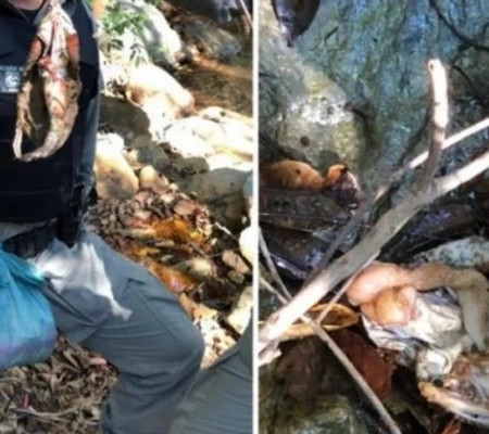 Os policiais acharam o anfíbio perto de algumas pedras, às margens de um dos córregos usados por Lázaro para se movimentar pela mata. Ao lado do animal, foi deixado um facão, aparentemente pouco amolado, recolhido pelos integrantes da força-tarefa. Acredita-se que o objeto era usado pelo psicopata, mas foi abandonado quando perdeu o corte.
