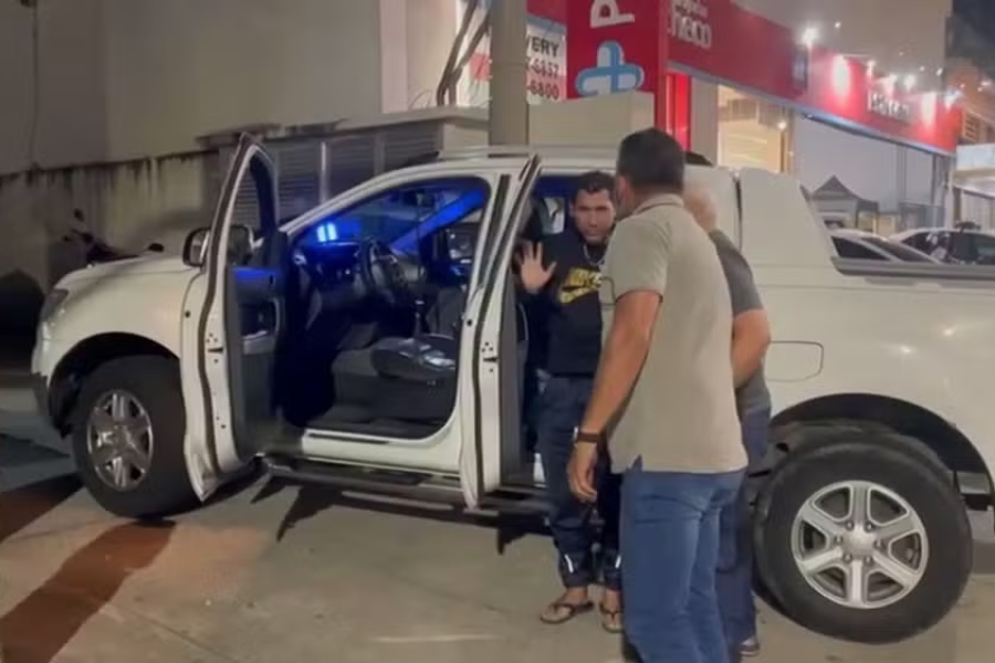 Ellison, de casaco preto, foi preso e levado para a 37ª DP | Foto: Reprodução