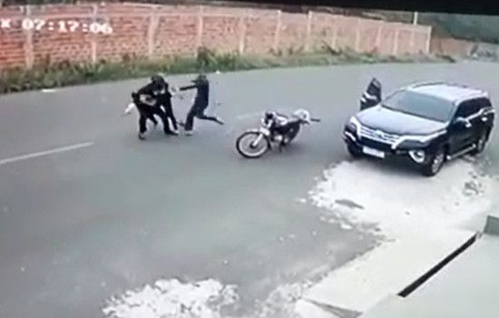 Nas imagens, é possível perceber que o policial estava na porta da residência limpando um veículo, quando os criminosos chegam. A primeira dupla aborda o agente, que reage na sequência e é agredido. Um terceiro ajuda os comparsas, enquanto o quarto espera em uma das motos. Eles conseguem pegar a arma do policial, realizam um disparo contra ele e fogem em destino ignorado.