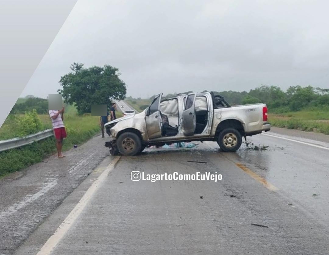 O veículo capotou após passar sobre a água, perder atrito com o solo e capotar no km 99 da BR-235, na altura do Povoado Cutia, no município de Carira (SE).