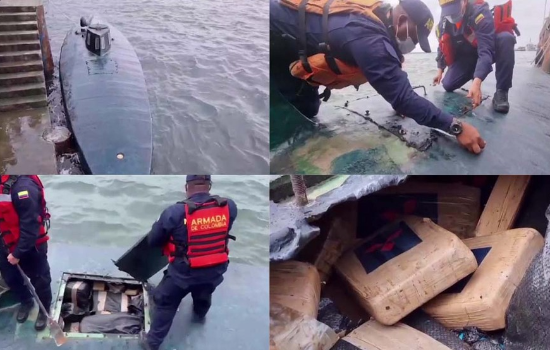 A Marinha da Colômbia apreendeu quatro toneladas de cocaína em um submarino de 15 metros de comprimento no sul do Oceano Pacífico.Quatro pessoas foram presas a bordo do barco semissubmersível, que se dirigia para a costa da América Central. As informações são do g1.