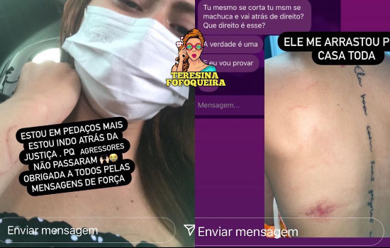 A situação veio à tona após uma página de fofocas da capital repercutir os relatos de Juliana Aguiar, que expôs prints de uma conversa com o ex-companheiro, onde ele nega a acusação alegando que ela mesma teria se machucado. Além disso, a técnica publicou uma imagem mostrando hematomas nas costas que teria sido em decorrência das agressões e que Dhaklan Eduardo teria a ‘arrastado pela casa toda’.