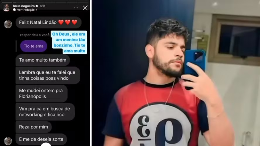O ex-participante do Masterchef, Bruno Nogueira, que é tio de Gustavo Pereira Silveira Elias, encontrado morto com outras três vítimas na segunda-feira (1º de janeiro) em uma BMW em Santa Catarina, divulgou mensagens que teve com o sobrinho em uma rede social.