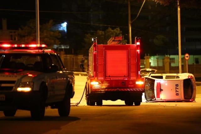 Uma viatura da Brigada Militar acabou capotando durante uma perseguição em Porto Alegre na madrugada deste sábado. Por volta das 2h50min, os policiais estavam atrás de um Honda Fit furtado quando perderam o controle, no encontro das avenidas Protásio Alves e Carlos Gomes.