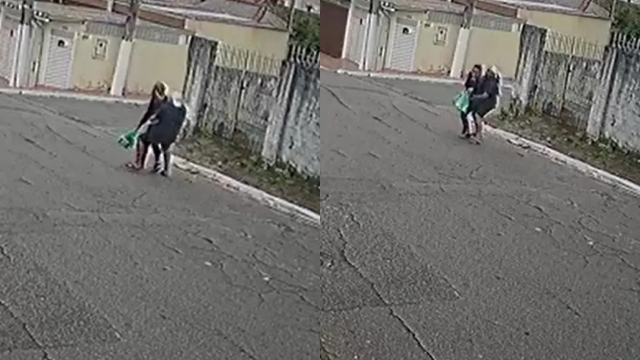 Um adolescente de apenas 12 anos foi apreendido após agarrar uma mulher que retornava para casa e dá várias "encoxadas" nela. De acordo com as imagens de câmeras de segurança, a vítima aparece carregando sacolas de mercado quando o menino chega por trás, olha para os lados, disfarça e a agarra pelas costas.