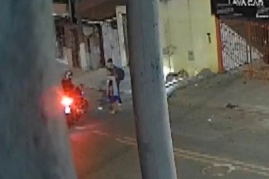 Uma câmera de segurança registrou o exato momento em que o criminoso se aproximou e atirou contra o jovem que caminhava pela Rua Padre Jean Jobard.
