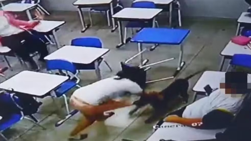 Uma menina de 12 anos foi atacada por um cachorro nesta segunda-feira (22), dentro de uma escola em Mineiros, no sudoeste de Goiás. Imagens de segurança registraram o incidente, onde a aluna foi mordida pelo animal e precisou ser levada para uma Unidade de Pronto Atendimento (UPA).