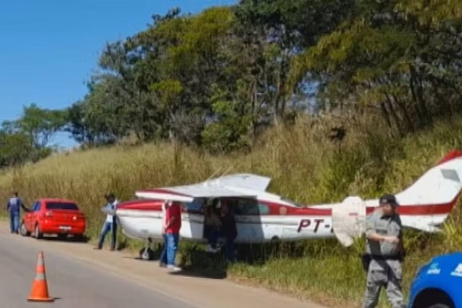 Um avião precisou fazer um pouso forçado nesta quarta-feira (15) na GO-080, entre Damolândia e Nerópolis, na região metropolitana de Goiânia. De acordo com a Polícia Militar, cinco pessoas estavam a bordo e todas foram resgatadas sem ferimentos.