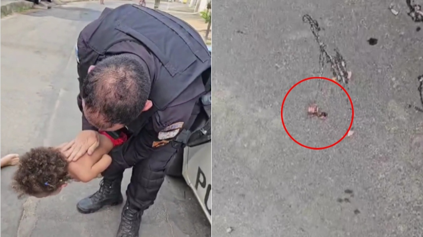 Uma criança de apenas 2 anos foi salva por um policial militar após se engasgar com uma peça de brinquedo metálico, em Campos, no Rio de Janeiro. Nas imagens compartilhadas nas redes sociais, o sargento Fabrício aplica na menina a manobra de Heimlich — procedimento de primeiros-socorros que envolve compressão no abdômen para desobstruir vias aéreas.