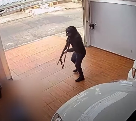 O crime ocorreu na rua Artur Rodrigues Alcântara, na Vila Galvão, às 7h28. As imagens mostram um homem encapuzado, com uma arma longa em mãos, correndo em direção à casa da vítima. O homem, que abria o portão da garagem, tenta correr para dentro quando vê a aproximação do suspeito.