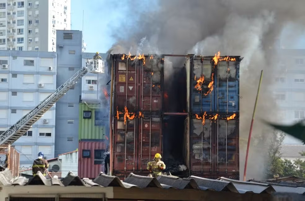 Um incêndio atingiu um conjunto de contêineres utilizados como moradias na Avenida Cubanos, no bairro Partenon, na Zona Leste de Porto Alegre, neste sábado (1º ). De acordo com o Corpo de Bombeiros, não há informações sobre vítimas até o momento.