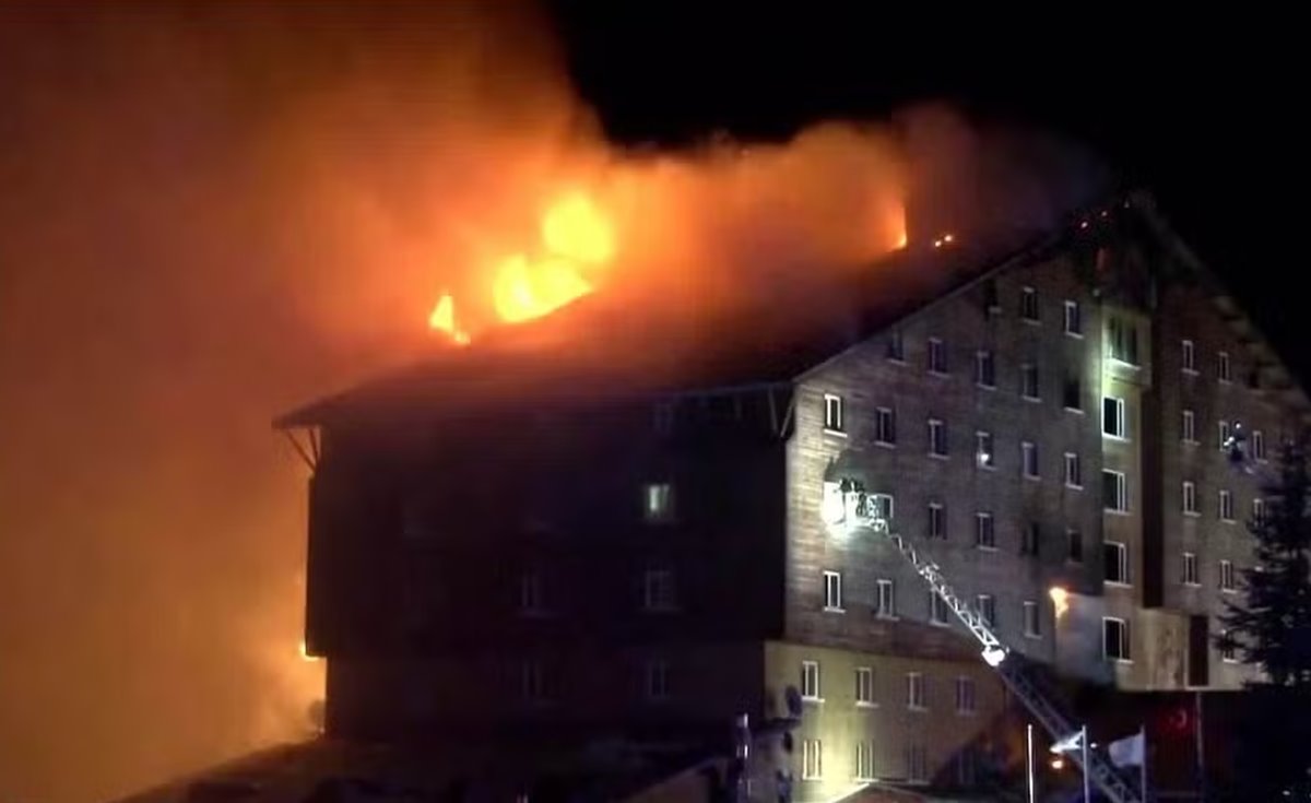 Um incêndio em um hotel de estação de esqui no noroeste da Turquia matou 66 pessoas e feriu 51, segundo autoridades locais. O fogo teve início em um restaurante no quarto andar de um hotel de 11 andares na estação de esqui Kartalkaya, em Bolu, por volta das 3h30 (21h30 de segunda, no horário de Brasília).