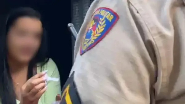 Segundo o registro, a suspeita inicialmente ignorou as instruções dadas pelos policiais e posteriormente começou a proferir insultos e afirmou “ter parentes policiais”.