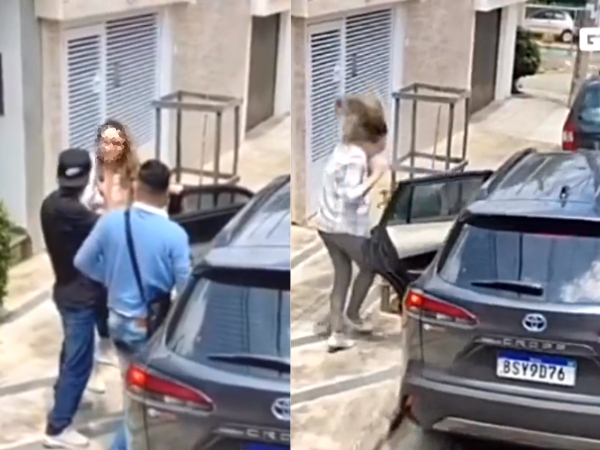 Uma médica foi baleada durante uma tentativa de assalto em no bairro Campestre, em Santo André, no Grande ABC Paulista, na manhã desta terça-feira (25). Nas imagens, um trio aparece cercando a vítima, Lorena de Crignis Ornellas, que pede para que eles não levem o carro, modelo T-Cross/Toyota, instrumento de trabalho dela.