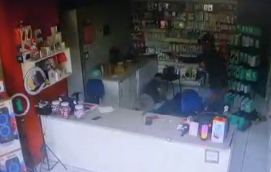 Imagens de câmeras de segurança obtidas pelo Meionorte.com mostram o momento de um assalto, ocorrido no início da tarde desta segunda-feira (25), em uma loja de celulares localizada na avenida Centenário, no bairro Aeroporto, zona Norte de Teresina. Na situação, o dono da loja, um empresário identificado como João Marcelo, foi baleado pelo criminoso.