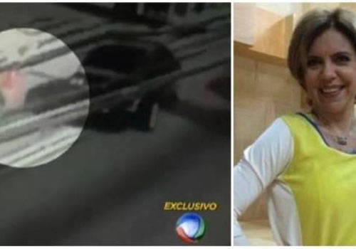 A apresentadora teve o carro baleado por assaltantes no mês passado. As imagens mostram o momento em que um deles desce da moto e vai até o carro, que arranca. Ele corre atrás e dispara várias vezes. As marcas dos tiros ficaram nos vidros blindados.
