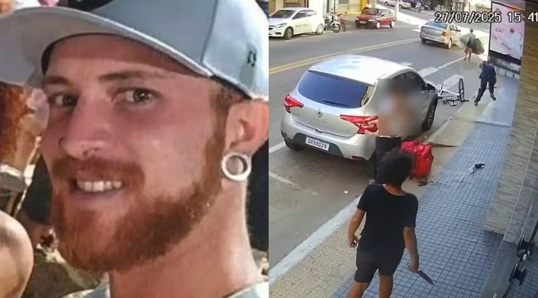 Câmeras de segurança flagraram a briga entre casal que terminou com o genro sendo morto pela própria sogra, em Guarapari (ES). Felipe Catanio de Araújo, de 32 anos, morreu com uma facada no peito, na tarde deste domingo (27).