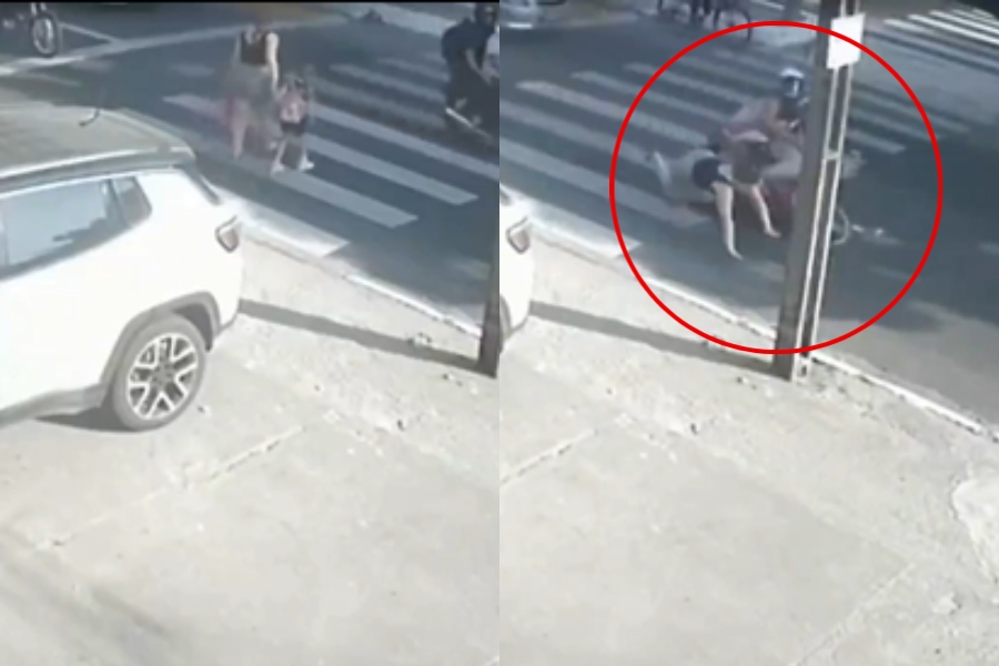Uma mulher e sua filha foram atropeladas e arremessadas por uma motociclista enquanto atravessavam a faixa de pedestres na Avenida Leste-Oeste, no bairro Pirambu, em Fortaleza (CE). O acidente, registrado por câmeras de segurança, ocorreu no dia 26 de agosto, mas as imagens foram divulgadas nesta semana.