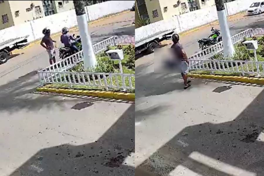 Conforme as imagens, o motociclista para o veículo em frente a um condomínio residencial e o policial militar desce da garupa, iniciando a discussão. Durante o bate-boca, a vítima empurra o PM, que anda para trás em direção ao portão do prédio, puxa a arma e abre fogo.