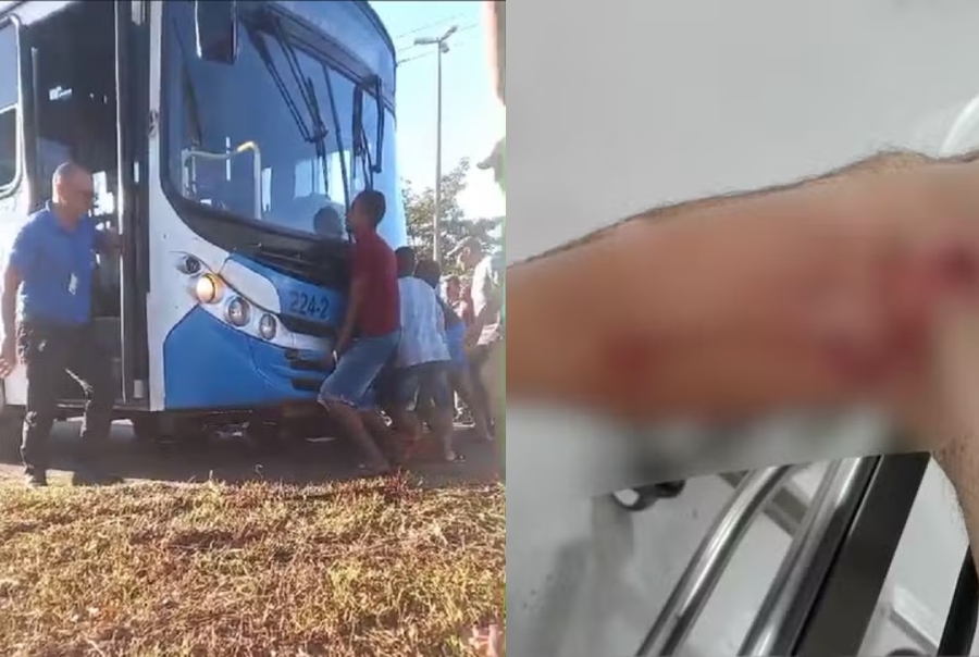 Na manhã do último sábado, um motociclista foi atropelado e arrastado por um ônibus do transporte público e populares precisaram levantar o veículo para retirá-lo. A situação ocorreu em Palmas (TO) foi registrada por testemunhas. A vítima, identificada como Diovane Parentes Ribeiro, de 23 anos, passa bem.