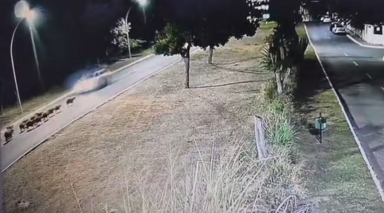 O crime foi registrado por câmeras de monitoramento. Nas imagens, é possível ver o momento exato em que o veículo atinge as capivaras, que andavam "em fila" em uma das faixas central da via principal da região.