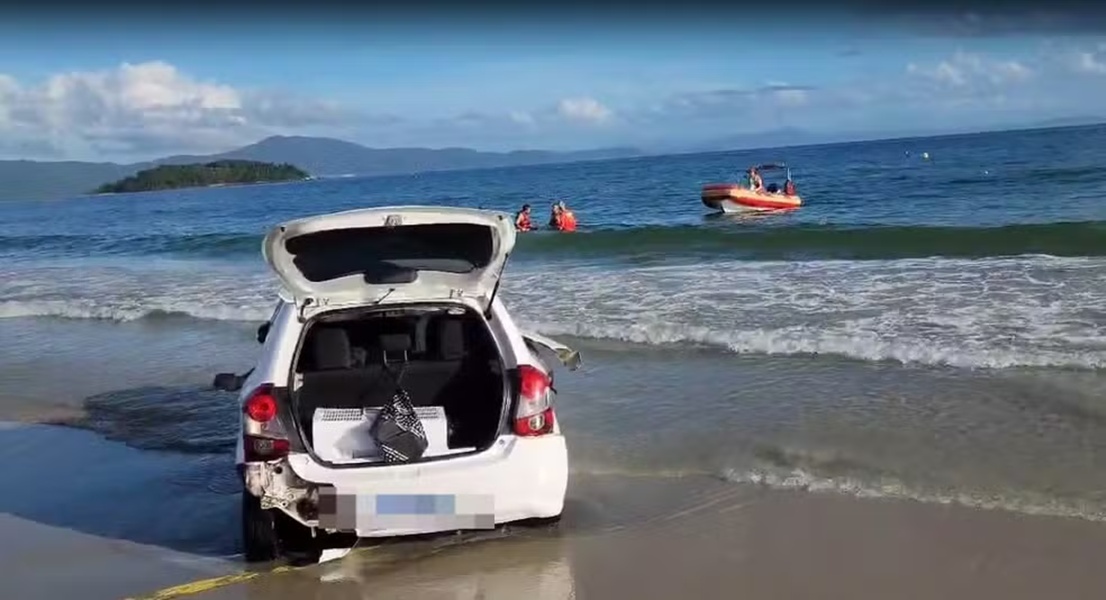 Um homem de 39 anos, não identificado, foi preso ao fugir de carro, colocar o veículo no mar e tentar escapar nadando em Florianópolis nesta quinta-feira (06). Ele foi flagrado pela Polícia Rodoviária Federal (PRF) trafegando em alta velocidade na SC-401, rodovia mais movimentada da capital, não acatou a ordem de parada e foi parar na praia de Canasvieiras.