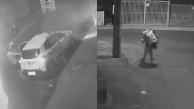 Minutos depois, um homem aparece andando pela rua. Ele se aproxima da mulher, a carrega pelas costas e sai do local levando-a. De acordo com a polícia, a jovem foi encontrada coberta por um pano, mas com a calça e calcinha abaixadas até o joelho, em um campo de futebol no bairro Santo André.