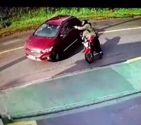 Imagens de câmeras de segurança registraram o momento do crime. A mulher se aproxima do condomínio em seu veículo vermelho, abre o portão, quando é abordada por um motociclista que friamente para ao lado, aponta a arma e efetua os tiros.