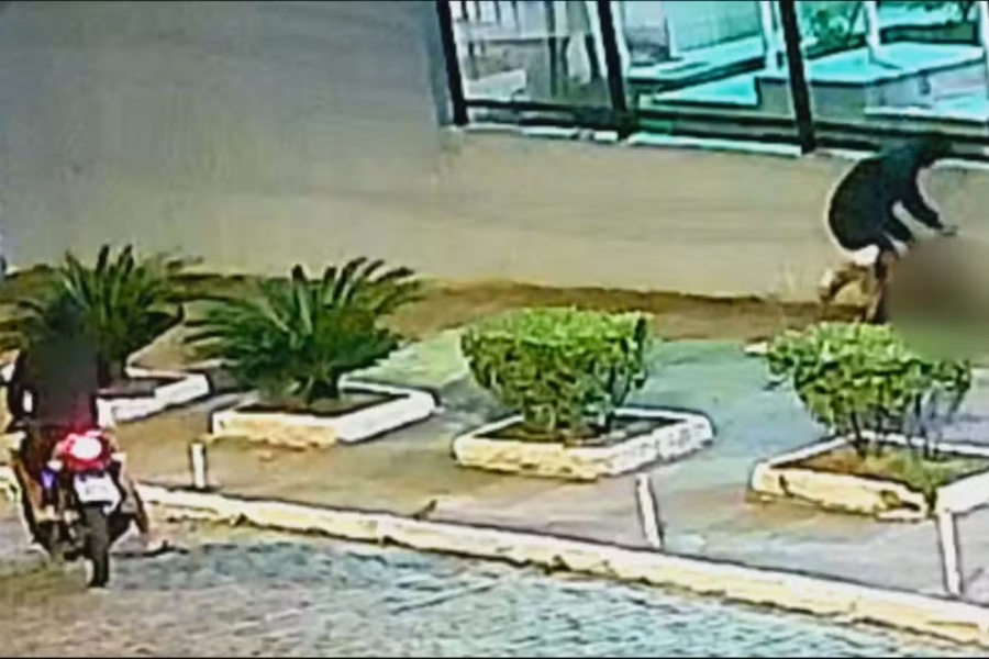 Imagem mostra print do vídeo que flagrou o assaltante durante roubo ao celular de uma jovem, que se desesperou e implorou para não ser roubada | FOTO: Reprodução