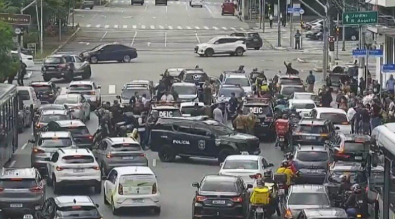 A perseguição aos suspeitos durou cerca de 23 minutos, terminando na Avenida Brigadeiro Faria Lima, centro financeiro de São Paulo, perto da esquina com a Cidade Jardim.