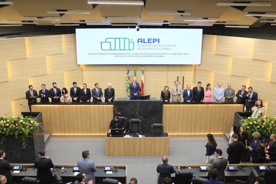 Na manhã desta quinta-feira (14), a Assembleia Legislativa do Piauí (Alepi) realizou uma dupla comemoração: os 35 anos de instalação do Tribunal Regional Federal da 1ª Região (TRF1) e os 20 anos dos Juizados Especiais Federais da 1ª Região (JEF).