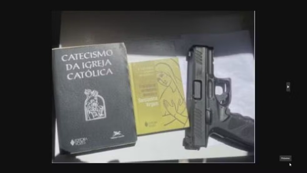No texto, que cita o responsável pelo atentado a bomba de quarta, o autor diz que há uma luta contra o Supremo, e que não haverá descanso até que a Suprema Corte brasileira seja eliminada. Uma foto de uma arma de fogo ao lado de dois livros religiosos acompanha a mensagem.