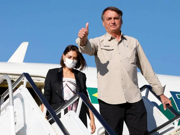 Bolsonaro viajou numa aeronave da FAB (Força Aérea Brasileira), acompanhado da primeira-dama, Michelle Bolsonaro, e de auxiliares que serão seus assessores quando virar ex-presidente.