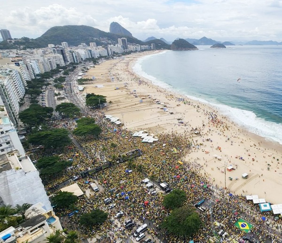 A análise, feita com fotos aéreas e inteligência artificial, refere-se ao público às 12h. A manifestação bloqueou a Avenida Atlântica entre as ruas Barão de Ipanema e Xavier da Silveira. O protesto ocorreu uma semana antes do STF julgar a denúncia da Procuradoria-Geral da República que pode tornar Bolsonaro réu.