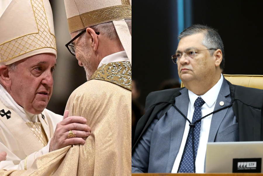 Montagem mostra Papa Francisco, bispo e ministro Flávio Dino | Foto: Montagem/MeioNews