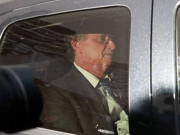 O ex-presidente Jair Bolsonaro depois de depor à PF sobre joias milionárias que recebeu de presente do governo da Arábia Saudita | Foto: Sergio lima/AFP